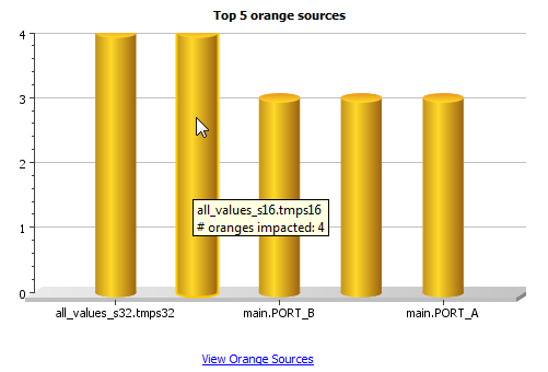 • View the five sources affecting the most number of checks. Select a column to view further details of the corresponding orange source in the Orange Sources pane.