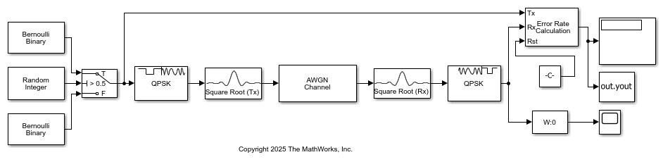 This example shows how to randomly vary the signal length from frame to frame while computing the bit error rate (BER) for each frame in a QPSK-modulated link level simulation.
