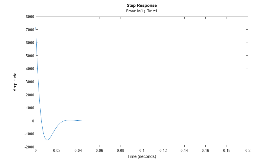 Examine the dynamics introduced by the internal delay. This atypical behavior is due to the extremely stiff (high frequency) response of the internal delay signal $z$($t$) to the initial step. To analyze the contribution of internal delay signal, use the augdelay function.