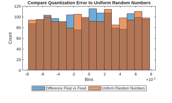 You can use an example output to explore how PQN can align with quantization error. The PQN is uniformly distributed noise uncorrelated with the input data, but this section shows it behaves similarly to the actual quantization error.
