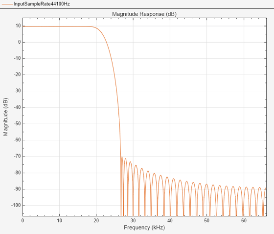 firinterp = dsp.FIRInterpolator(L,"Auto")NumeratorSource property set to
