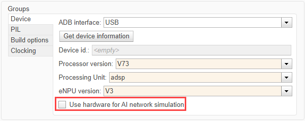 This option is for the CPU clock frequency of the microcontrollers on the target hardware. The DSP clock is dependent on the selection of Hexagon interface.