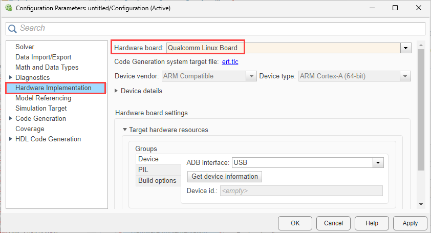 | Platform | Select the device platform for the selected hardware board. | Hexagon Simulator |