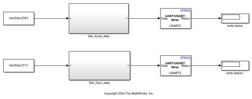 Read Accelerometer and Gyrometer Data from an STMicroelectronics STM32F401RE Board Using USART Blocks