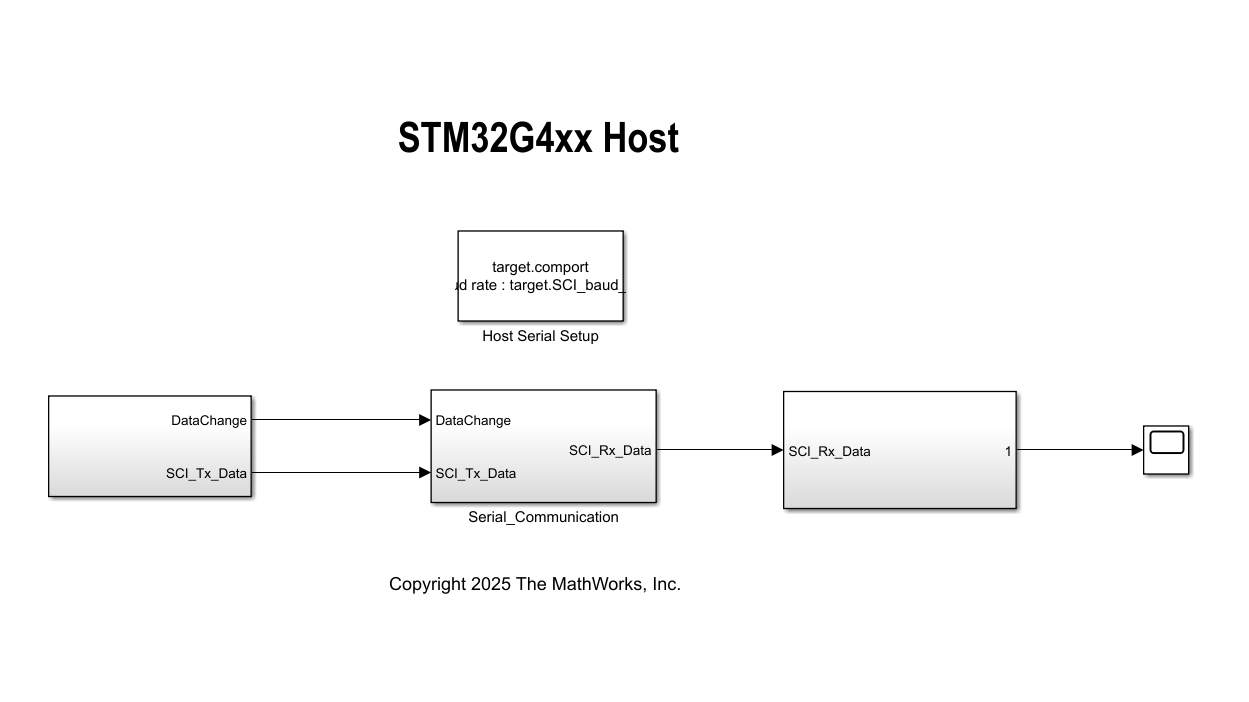 This example uses a host and a target model. The host model is a user interface to the controller hardware board. You can run the host model on the host computer. The prerequisite to use the host model is to deploy the target model to the controller hardware board. The host model uses serial communication to command the target Simulink model and run the motor in a closed-loop control.