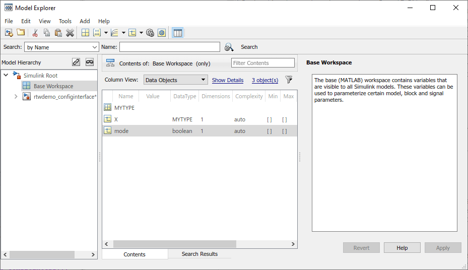 In the Model Hierarchy pane, select Base Workspace.