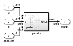 The top-level DUT Subsystem name is the same as the top-level module name in the input file. You see that the import inferred a Compare to Constant block from the input Verilog code.