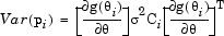 where Ci depends on fi through the variance of θi and also on gi through the conversion of θi to the response features pi. Two standard assumptions are used in determining Ci: the asymptotic approximation for the variance of maximum likelihood estimates and the approximation for the variance of functions of maximum likelihood estimates, which is based on a Taylor series expansion of gi. In addition, for nonlinear or gi, Ci depends on the unknown θi; therefore, we will use the estimate in its place. These approximations are likely to be good in the case where σ2 is small or the number of points per sweep (mi) is large. In either case we assume that these approximations are valid throughout.