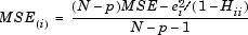 MSE calculated with ith point removed from the data set.
