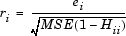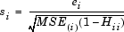 ith Standardized or Internally Scaled Studentized Residual.