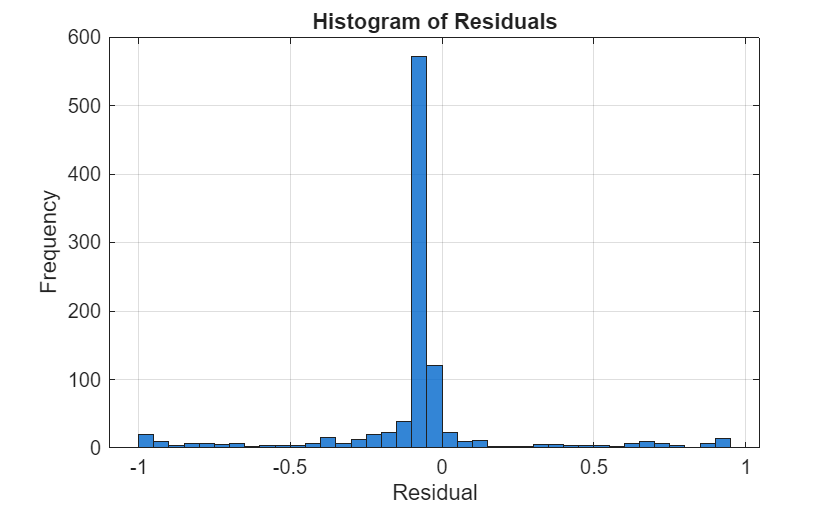 histogram(residuals,BinWidth=0.05,FaceColor=[0 0.4 0.8],FaceAlpha=0.8);