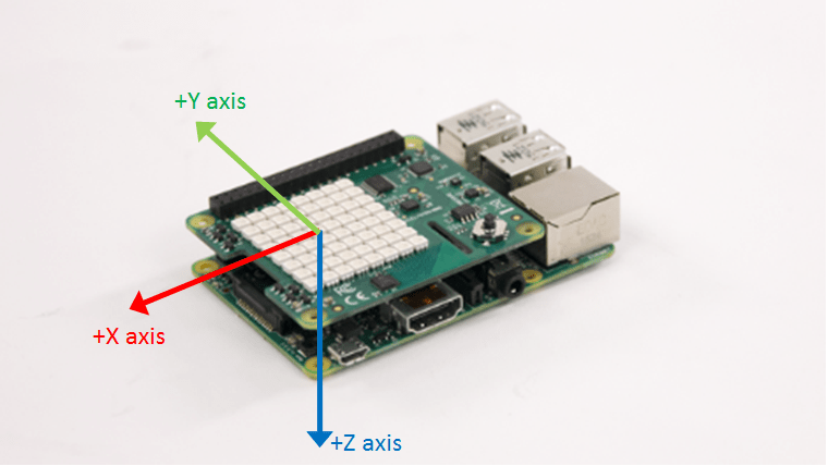 The numerical values representing joystick positions are ordered with respect to the reference position of the Sense HAT. The HDMI port of the Raspberry Pi board facing downwards is the reference position.