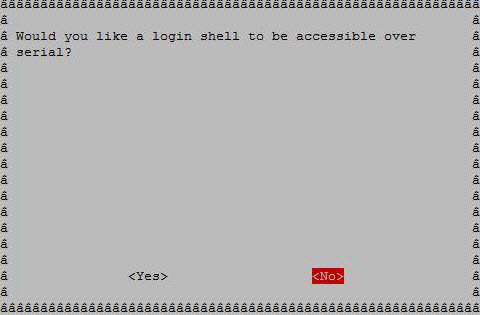 In the next screen, select 'No' to indicate that you do not want a login shell to be accessible over serial.