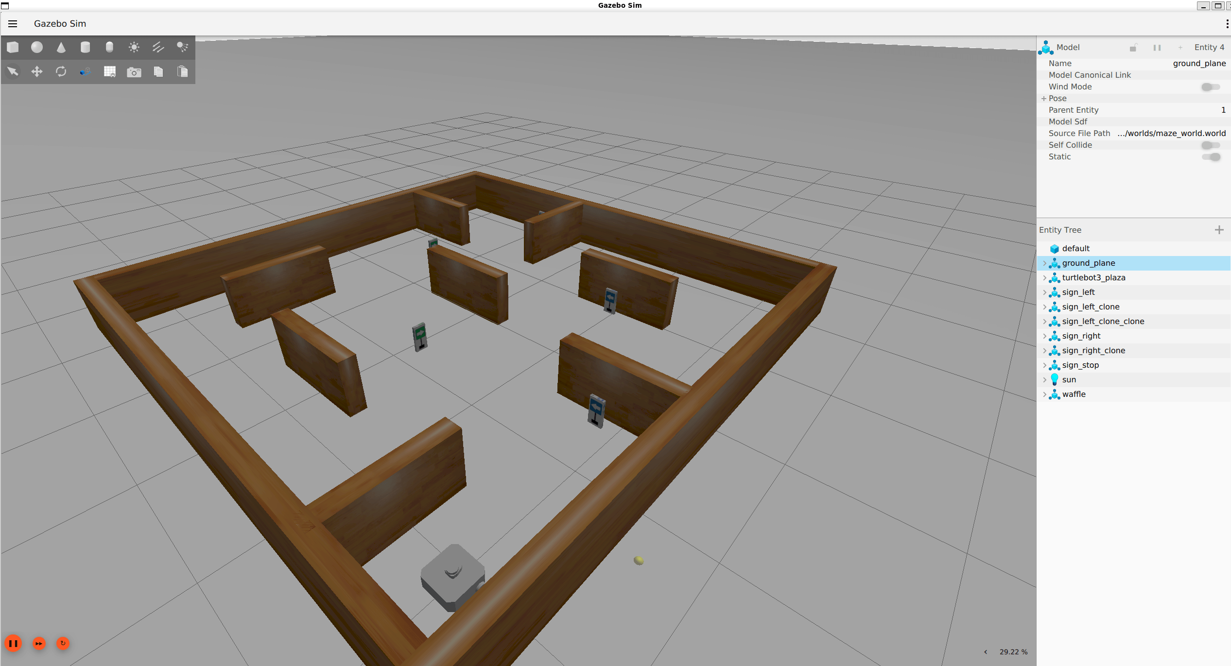 $ source /home/user/ros2_ws/install/setup.bash $ ros2 launch turtlebot3_gazebo maze_world.launch.py