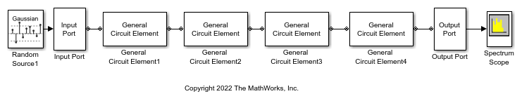 In this portion of the example, you create a Simulink model. For more information about adding and connecting components, see Model RF Components.