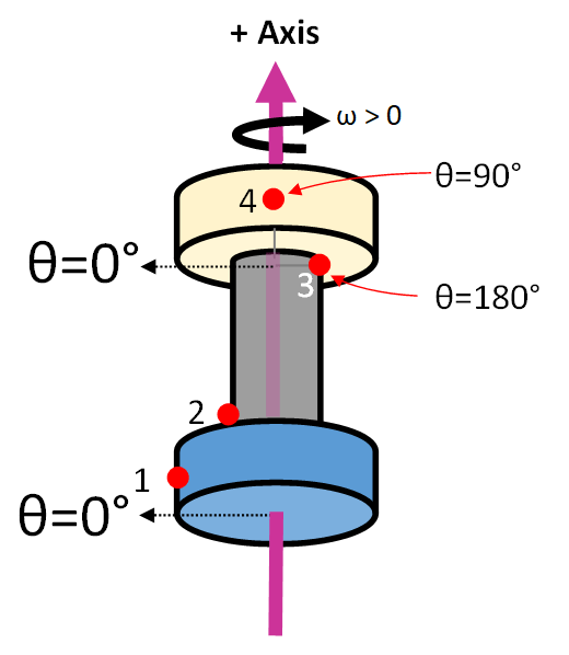 The spacer ports B and F have the same angular velocity: . Their angles differ by a constant offset equal to the Relative angle parameter: .
