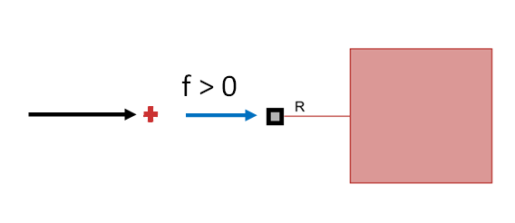 The force f in a source or constraint block is the force flowing out of the block and into the rest of the system. Force flowing out of a source block, such as an External Force Source, indicates that the source acts to accelerate mass in the positive direction. Force flowing out of a constraint block, such as a World block, indicates that the constraint acts to prevent mass from accelerating in the negative direction.