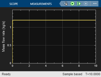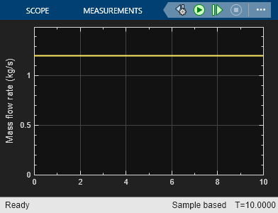 Simulate the model and view the baseline mass flow behavior in the Mass Flow Rate block.
