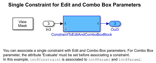 A mask contains parameters that take user input from the mask dialog box. You can use parameter constraints to validate these inputs without writing custom code. Constraints verify that the parameter values meet the required conditions.
