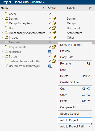 For more information on projects, see What Are MATLAB Projects in Simulink?