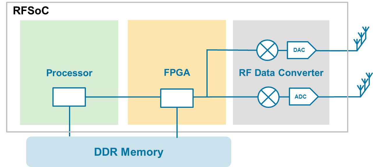 SoC Blockset analyzes applications in hardware with performance diagnostics and software profiling. Supported devices include AMD® Versal® adaptive SoCs, Zynq® UltraScale+™ MPSoCs/RFSoCs, and Zynq-7000 SoCs, as well as Intel® SoC FPGAs.