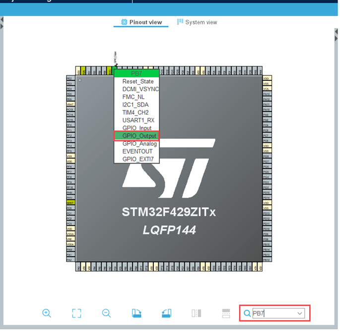 4. Configure the same pin (PB7) as GPIO_Output in your STM32CubeMX project to toggle user LED.