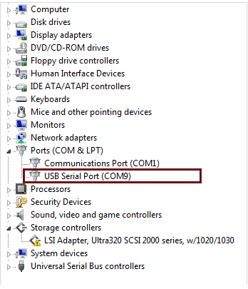 Note: To see the list of available COM ports on your computer, select Start > Control Panel > Device Manager > Ports (COM &LPT).