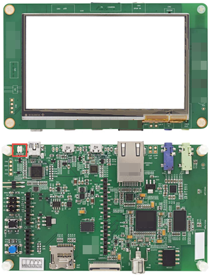 When you connect the STMicroelectronics STM32xxx based board, detection light starts blinking and then stops when your computer detects the STM32xxx board.