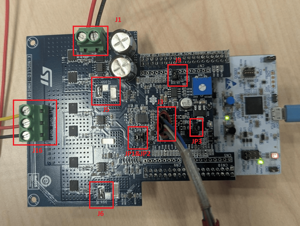 The example supports these hardware configuration. You can also use the target model name to open the model for the corresponding hardware configuration, from the MATLAB® command prompt. STM32G431RB Nucleo Board + X-Nucleo-IHM08M1 inverter: stm32_hall_sequence_calibration_target.slx