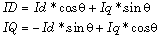 This block converts vectors in balanced two-phase orthogonal stationary systems into an orthogonal rotating reference frame. The transformation implements these equations