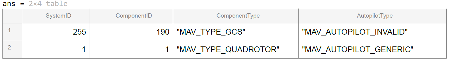 of input arguments from previous syntaxes.. For example, mavlink = mavlinkio(___,Name=Value)SystemID=2