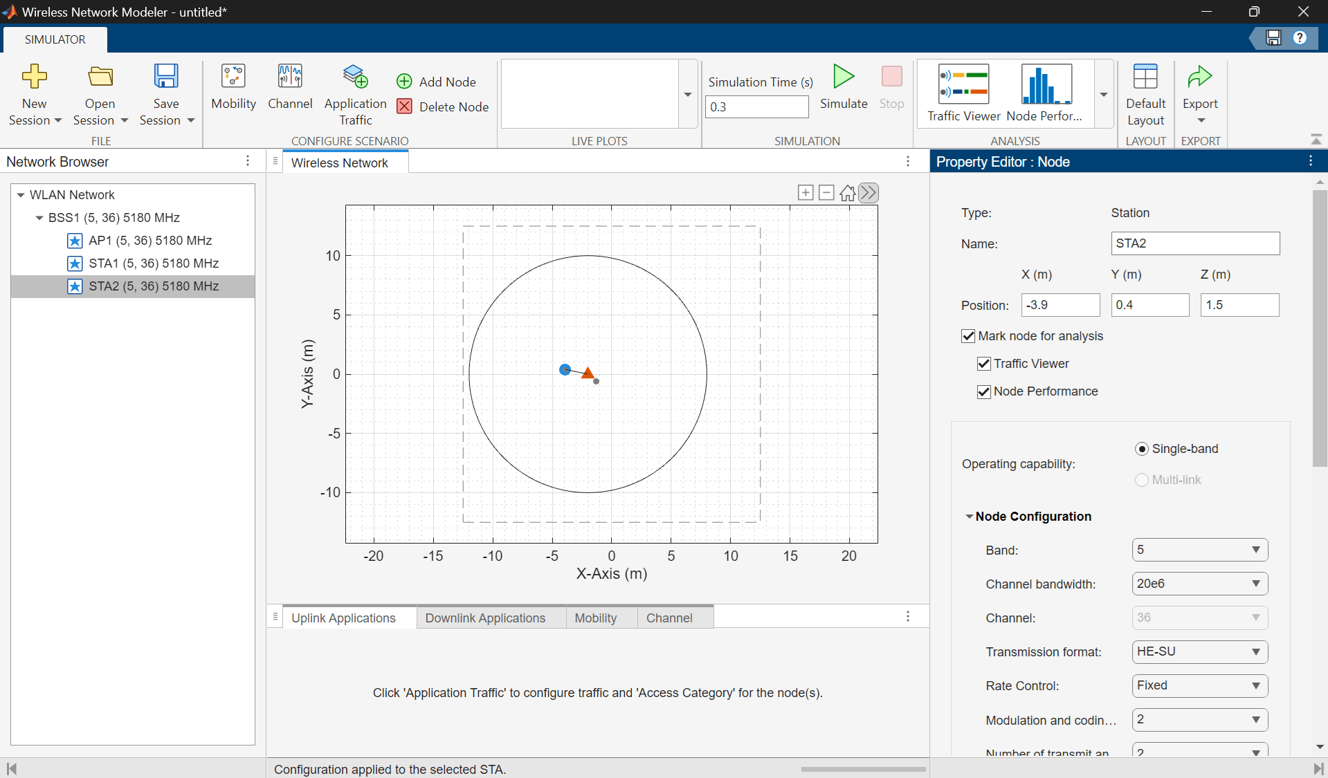 In the Network Browser pane, select STA1. In the Property Editor: Node pane for STA1, in the Node Configuration section, set Modulation and coding scheme to