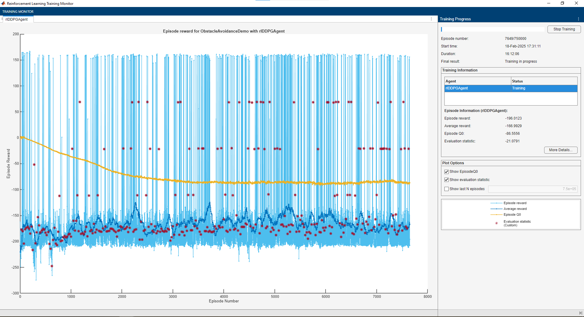 agentOptions.ActorOptimizerOptions.LearnRate = 1e-3;