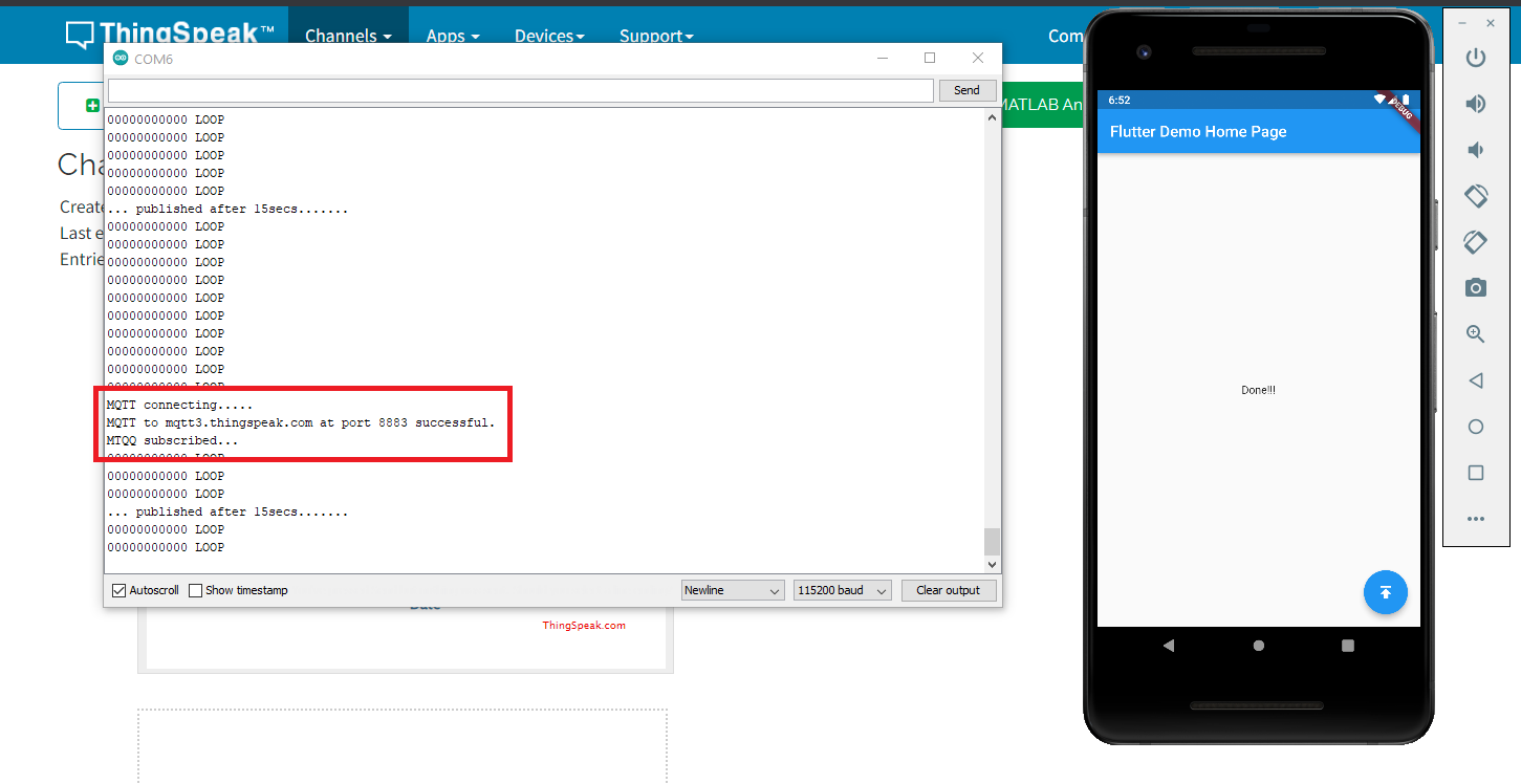 HOWEVER... heres the problem================ When I only publish from the mobile a value for Field1. And subscribing at the same time from my esp8266 to receive the updated value of Field1... something weird happens... My Field1 in the channel, in my Thingspeak account has been updated correctly... but my esp8266 doesnt receive the updated value. INSTEAD, at the same time I can see in the serial monitor logs, the esp8266 reconnects back to our MQTT server!! No update was received. It felt as if everytime I published a value from my mobile, it made my esp8266 disconnect and hence it needed to reconnect to the MQTT server. i checked this 10 times and it happened without a coincidence. I ran the same code on the esp8266, except that I never let it publish every 15secs. So all it did was stay subscribed and await an update from my mobile app. please see img2.png