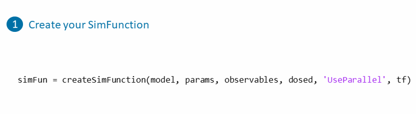 SimFunction allows you to perform multiple simulations in a single line of code by providing an interface to execute SimBiology® models like a regular MATLAB function.